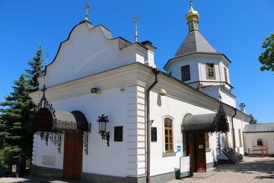 The Conception of St. Anne Church features traditional Eastern Orthodox architectural elements with distinctive domes and religious decorative patterns throughout its structure.