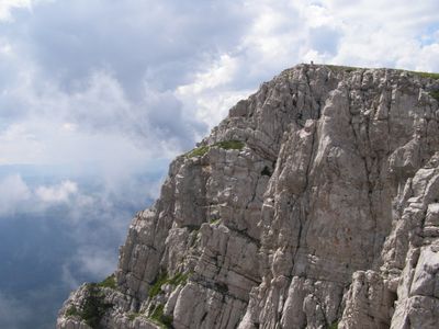 Eklizi-Burun reaches an elevation of 1,527 meters with steep limestone slopes leading to its peak in the Crimean Mountains range.