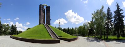 The monument stands within the Park of Slavonian Culture and Writing on Leninsky Avenue, featuring a design that commemorates war casualties.