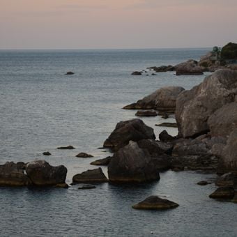 Batiliman stretches along the Black Sea coast, featuring distinct rock formations and small natural stone pyramids shaped by coastal erosion over time.