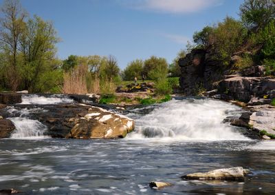 The Vyr Waterfall cascades down two meters across a span of 0.3 hectares within the Hirsky Tikych river system in central Ukraine.