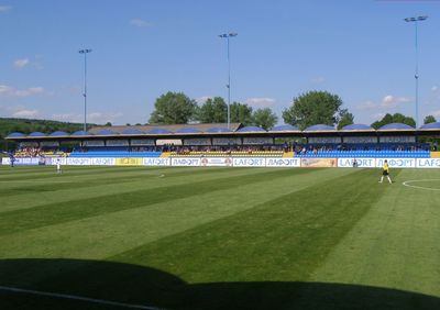 The stadium contains two covered stands along the sidelines and two open stands behind the goals, with a total capacity of 3,220 spectators.