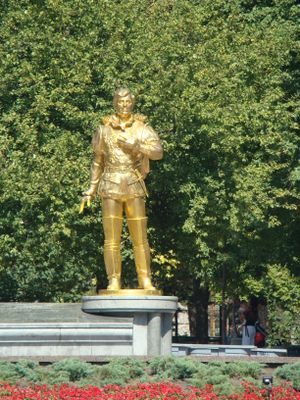 Sculptors A. Skorykh and V. Vyazovsky created this full-length representation to honor the notable tenor who started his career in Donetsk.