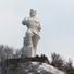 The Monument to Artyom in Sviatohirsk is a large concrete sculpture standing on the bank of the Siverskyi Donets River in eastern Ukraine. The figure rises from a hill called Lysa Hora and can be seen from several kilometers away, silhouetted against the sky.