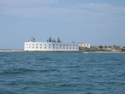 The Konstantinovsky Battery, constructed in limestone during the 1840s, contains a network of underground tunnels spanning multiple levels beneath the fort.