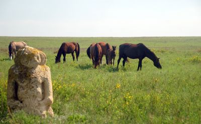 The protected steppe extends across 1,030 hectares near the Azov Sea coast, featuring rolling plains and valleys along the Hruzky Yelanchyk River.