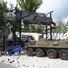 The museum features an indoor exhibition space, video hall, and outdoor area with military equipment including a BMP-2 combat vehicle and T-64 tank turret.