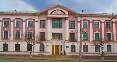 The three-story brick building at 33 Vatutina Street features traditional Soviet architectural elements and serves as a central cultural institution in Kryvyi Rih.