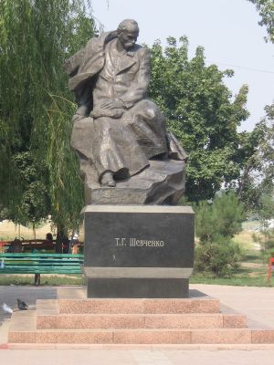 Monument to Taras Shevchenko, Bronze memorial statue in Mariupol, Ukraine.