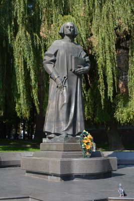In September 1999, the city inaugurated this monument to honor Yuriy Drohobych, a 15th-century scholar who obtained his doctorate and taught at European universities.