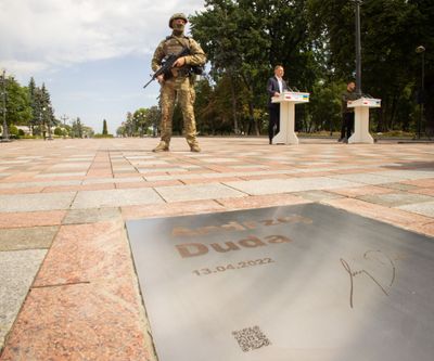 The Walk of the Brave features commemorative plaques along Constitution Square, recognizing international leaders who demonstrated support for Ukraine during 2022.