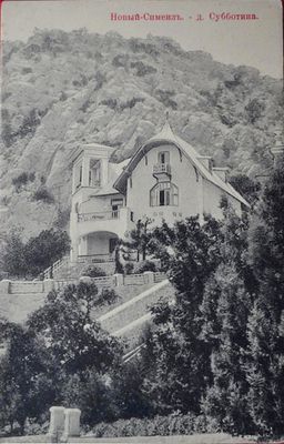 Engineer K.L. Subbotin designed the mansion, which military engineer General Major Y.P. Semenov constructed before 1912 on plot 30b of New Simeiz.