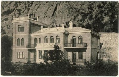 Villa Chorn stands at an elevation of 100 meters above sea level, featuring architectural elements typical of early 20th-century Crimean residential construction.