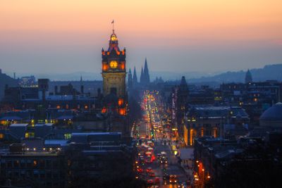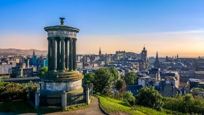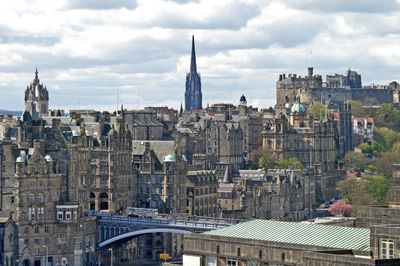 Edinburgh extends across seven hills, with medieval structures in the Old Town and Georgian buildings in the New Town forming a dual urban landscape.