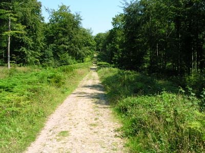 The stone-paved road stretches 91 kilometers from London Bridge to Chichester, following natural terrain features to minimize steep ascents through the hills.