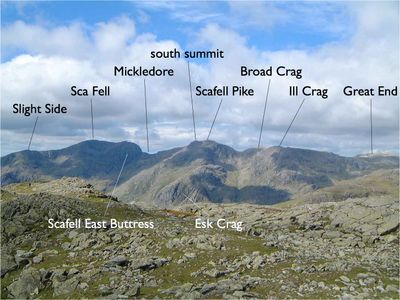 Rock climbing routes on Sca Fell's eastern buttress hold particular importance in British mountaineering documentation and climbing traditions.
