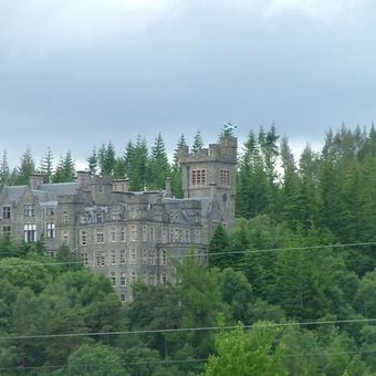Carbisdale Castle is a country house in the Highland area of Scotland, built in Scottish Baronial style on elevated ground near Adgay village. The building has 365 windows distributed across three floors and an attic.