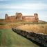 Tantallon Castle is a ruined medieval fortress in East Lothian, Scotland, perched on a headland overlooking the sea. The stronghold was built mainly as a massive wall facing landward, while the seaward side relied on natural cliff protection.
