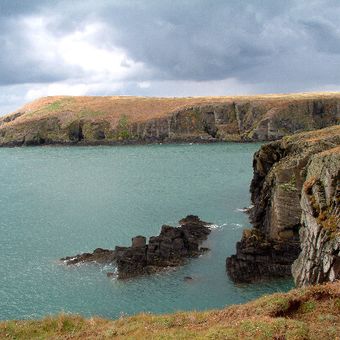 Ceredigion is a county in western Wales that runs along Cardigan Bay and stretches inland toward the forested hills and open moorlands of the Cambrian Mountains to the east. The coastline alternates between sandy coves, pebble beaches, and steep cliffs, while small rivers like the Teifi and Rheidol cut through valleys and run down toward the sea.