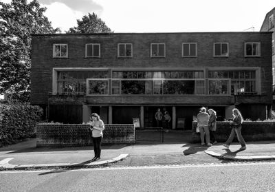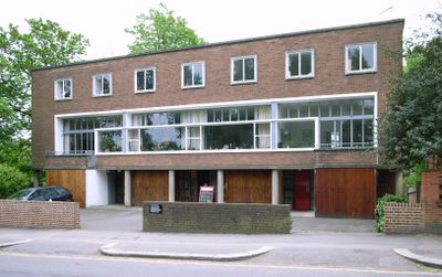 Ernö Goldfinger designed and built this house in 1939 as part of a row of three modernist houses to demonstrate his architectural ideas. Local residents and writer Ian Fleming opposed the project because of the demolition of older cottages and the unusual building style for Hampstead.