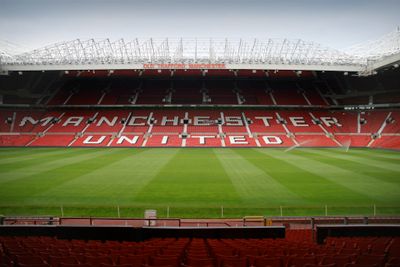 Old Trafford contains four covered stands with red seats, flood lights, and multiple tiers that extend around the rectangular grass playing surface.