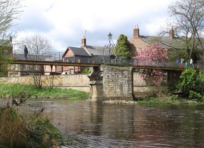 The River Wansbeck flows through this administrative center of Northumberland, featuring stone buildings along its winding streets and a clock tower.