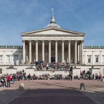 University College London is a higher education institution in Bloomsbury whose buildings spread across several blocks of the central neighborhood, housing lecture halls, research facilities, and workspaces for tens of thousands of students. The campus includes faculty buildings from different eras, from Georgian facades to modern glass structures, connected by open squares and tree-lined courtyards.