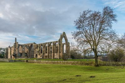 The remaining church structure continues to serve the local community with regular services, maintaining centuries of religious traditions in Yorkshire.