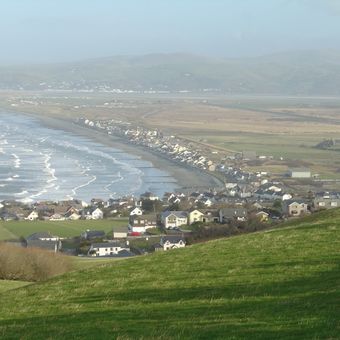 The coastal settlement of Borth extends along the Cardigan Bay shoreline, featuring a sandy beach that stretches for three kilometers north of Aberystwyth.