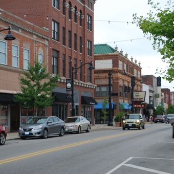The city contains numerous brick buildings, a central town square, and three MetroLink stations connecting residents to the greater St. Louis metropolitan area.