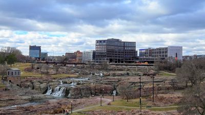The Big Sioux River flows through Sioux Falls, forming natural waterfalls that create a central gathering point within the city limits.