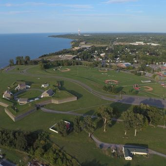 The site sits at the intersection of West First Street and Lake Street in Oswego and is marked by interpretive signage throughout. Visitors can walk the grounds independently and view the remains of the former fortification.