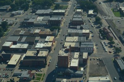 Abilene extends along the Smoky Hill River at an elevation of 352 meters, featuring wide streets lined with historic buildings from the 1800s.