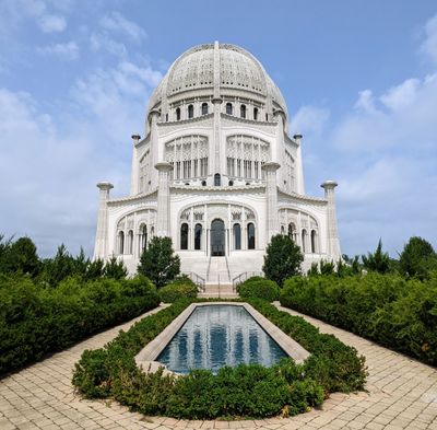 The North American Baháʼí House of Worship stands in Wilmette as a center for religious gatherings and architectural interest.