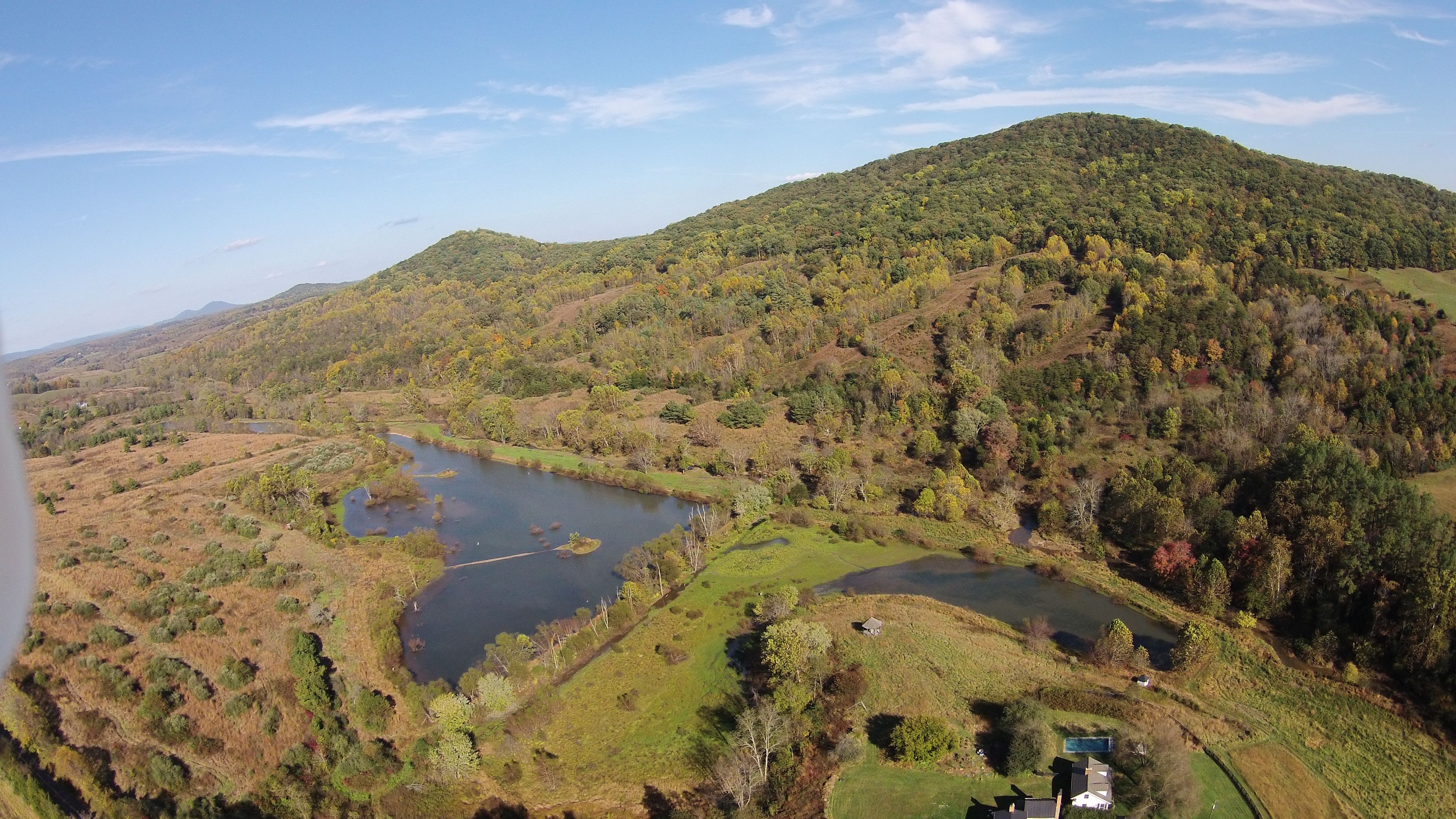 Battle Mountain stands at an elevation within the Blue Ridge Mountains, featuring exposed rock formations and diverse vegetation patterns along its slopes.