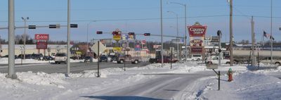 Norfolk extends along the North Fork Elkhorn River, with residential areas surrounding a commercial district at the intersection of U.S. Routes 81 and 275.