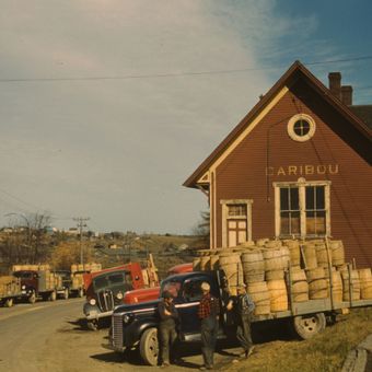 Caribou is a town in northern Maine near the Canadian border that serves as a trade center for surrounding farms. The streets run through a townscape of single-story buildings, warehouses and shops selling agricultural equipment.