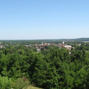 Chillicothe sits along the Scioto River in southern Ohio, spreading across gentle hills and flat bottomland. Downtown streets hold brick buildings from the 19th century, while residential neighborhoods and parks fill the areas near the floodplain.