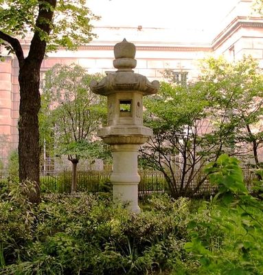 The stone lantern at the park's center, presented by Tokyo in 1960, marks the sister-city relationship between New York and Tokyo.
