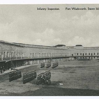 Fort Tompkins is a military fortress on Staten Island containing defensive structures, barracks, and observation towers positioned on high ground overlooking New York Harbor's entrance at the Narrows. The entire site sits within the Gateway National Recreation Area and features interpretive signs explaining the various military installations.