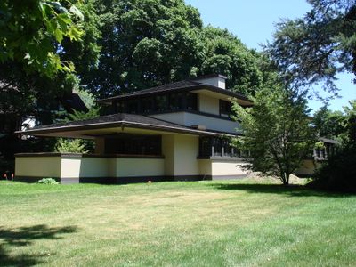 Built in 1908 for a lantern manufacturer, the residence became an important example of Wright's evolved design vocabulary of that era. Over the years it underwent changes that were later reversed through comprehensive restoration work.