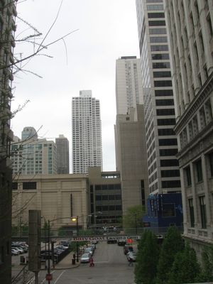The building sits on a busy street in River North, making it easy to locate but with typical city noise. Visitors can view it from the street or explore the nearby neighborhood, which has numerous restaurants and galleries.