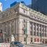 The Alexander Hamilton U.S. Custom House is a stone building with nautical decorations, statues representing the four continents, and Corinthian columns at the southern end of Broadway in Manhattan. Its seven stories display classical Beaux-Arts design with generous facade details and a striking interior rotunda.