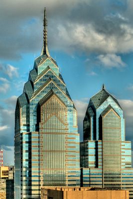 Two Liberty Place reaches a height of 258 meters with 58 floors, featuring a steel structure covered in granite, aluminum, and glass panels.