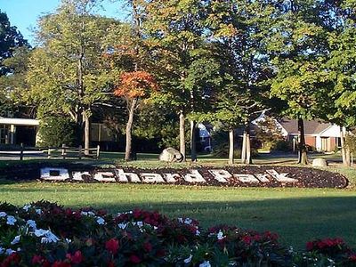 The town of Orchard Park spans 38.52 square miles of land southeast of Buffalo, featuring Green Lake and numerous residential neighborhoods.