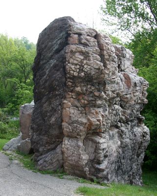 The rock formation stands along Wisconsin Highway 136, with a dedicated wayside parking area providing direct access for geological observations.