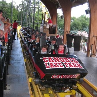 Canobie Lake Park is an amusement park in Salem, New Hampshire, spread along the shore of a lake and featuring 85 attractions. The property divides into several sections with roller coasters, family rides, and a water park area called Castaway Island.