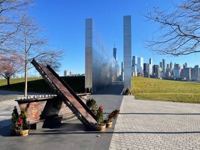The Empty Sky Memorial contains two 210-foot steel walls inscribed with names of 749 New Jersey residents who perished in the September 11 attacks.