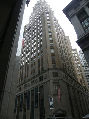 Located at the intersection of Wall Street and Hanover Street, the building maintains its position within Manhattan's active financial district.