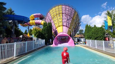 WildWater Adventure contains three swimming pools and sixteen water slides, including the Funnel of Fear tornado slide and Snake Pit slide complex.